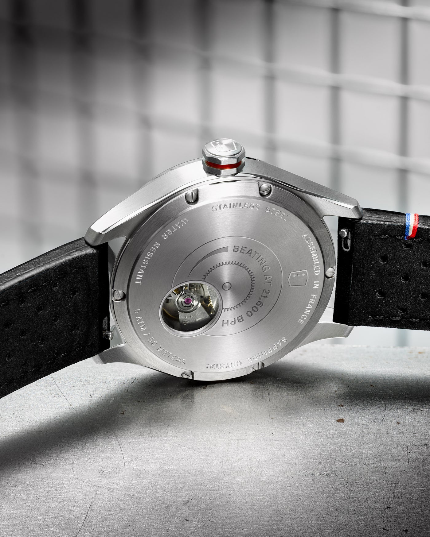 With its 316L steel case and sapphire crystal, the Autosport Date has a slim and elegant profile measuring 11,2mm (10,8mm without the glass) and 45,8mm from lug to lug. These dimensions are designed to offer the perfect balance between comfort and presence on the wrist.