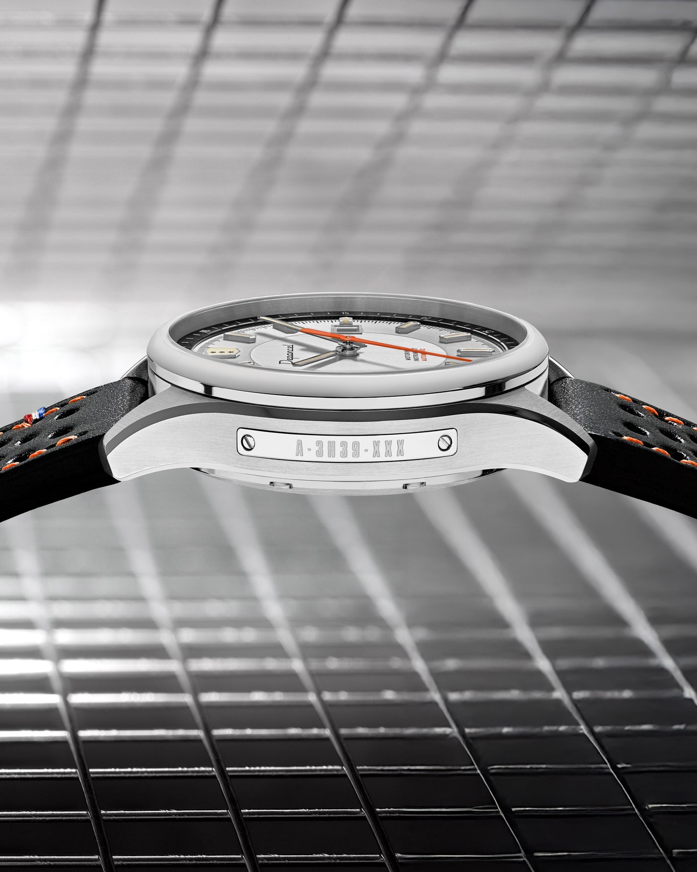 Each Autosport Date is unique. A numbered steel plate, screwed onto the side of the case, marks each piece as a nod to license plates.