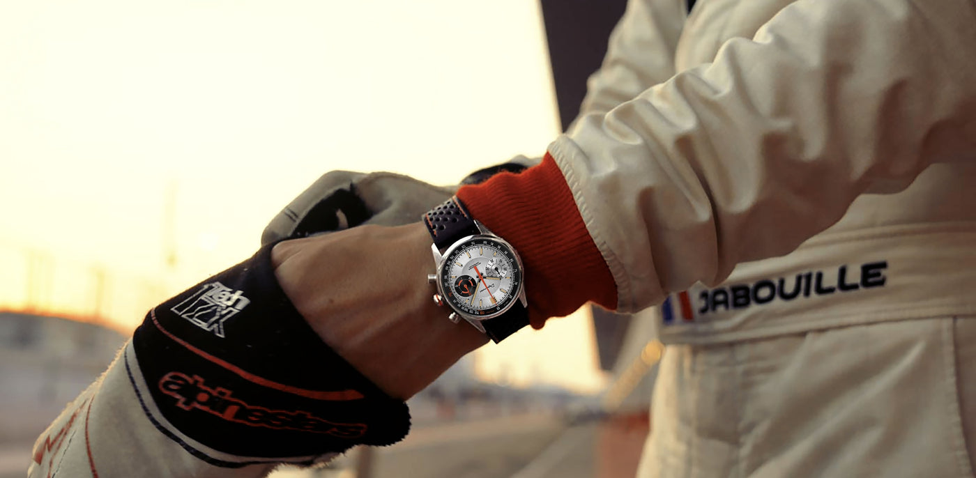 The ALLURE collection represents the essence of the union between style and functionality, offering the perfect balance for the contemporary gentleman driver. Its round, vintage-inspired case is more than just an accessory, it becomes the essential instrument both on the track and in the paddock. Every detail of this collection is meticulously designed to reflect timeless elegance while meeting the functional requirements of motorsport.