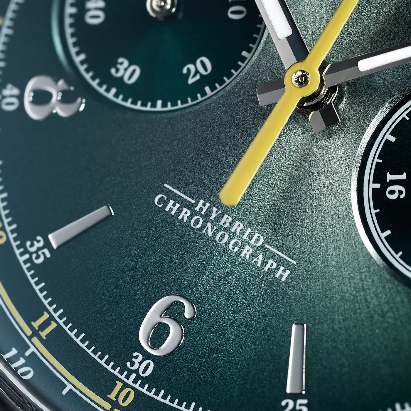 Serie-A Stradale has a hybrid meca-quartz movement that combines the precision of quartz with the beauty of traditional watchmaking in the form of a mechanical chronograph module.