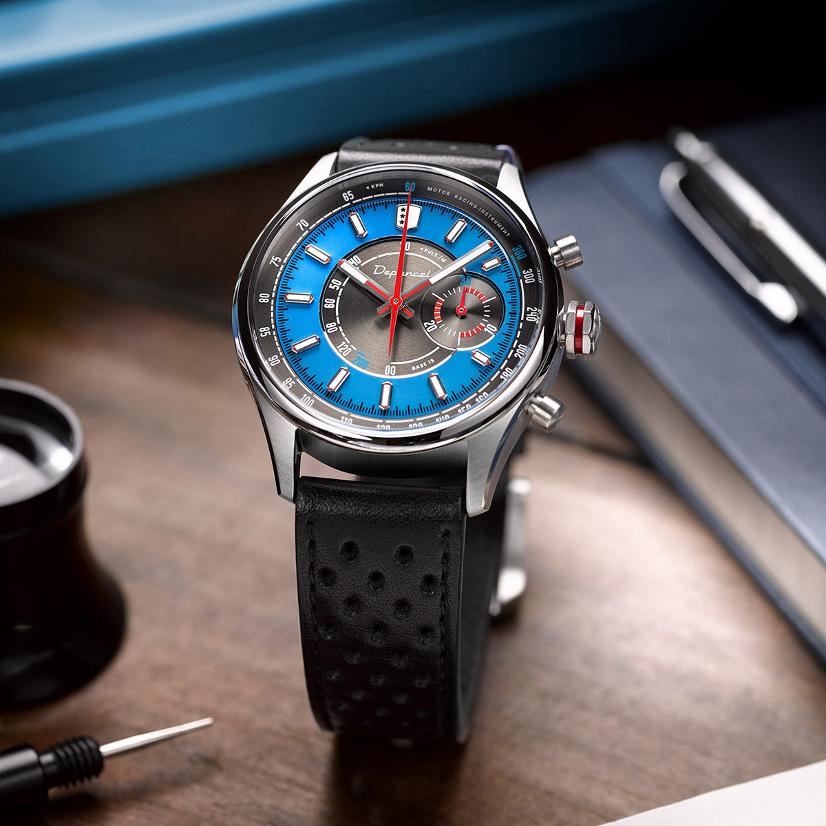 With the Allure Valjoux 92 Bleu de France, Depancel reaffirms its commitment to the heritage of mechanical watchmaking. This watch embodies Depancel's passion for period movements and its desire to perpetuate a precious art of precision, patience and authenticity.
