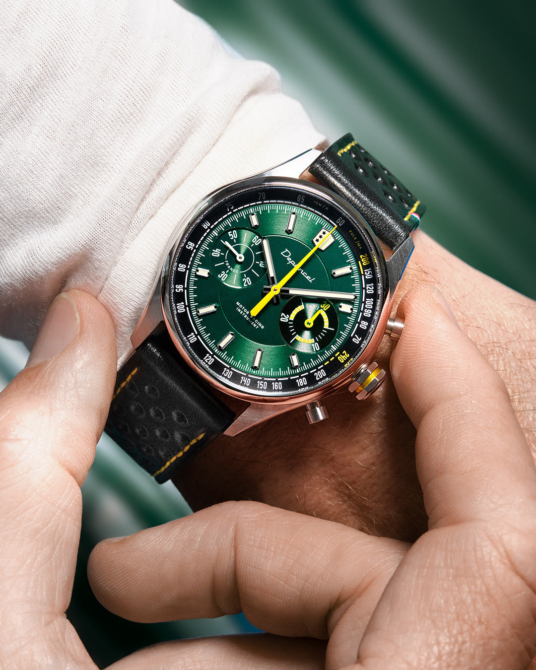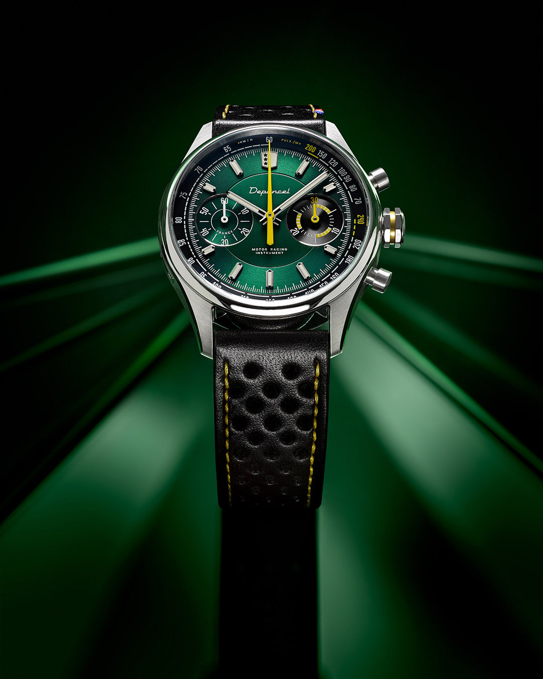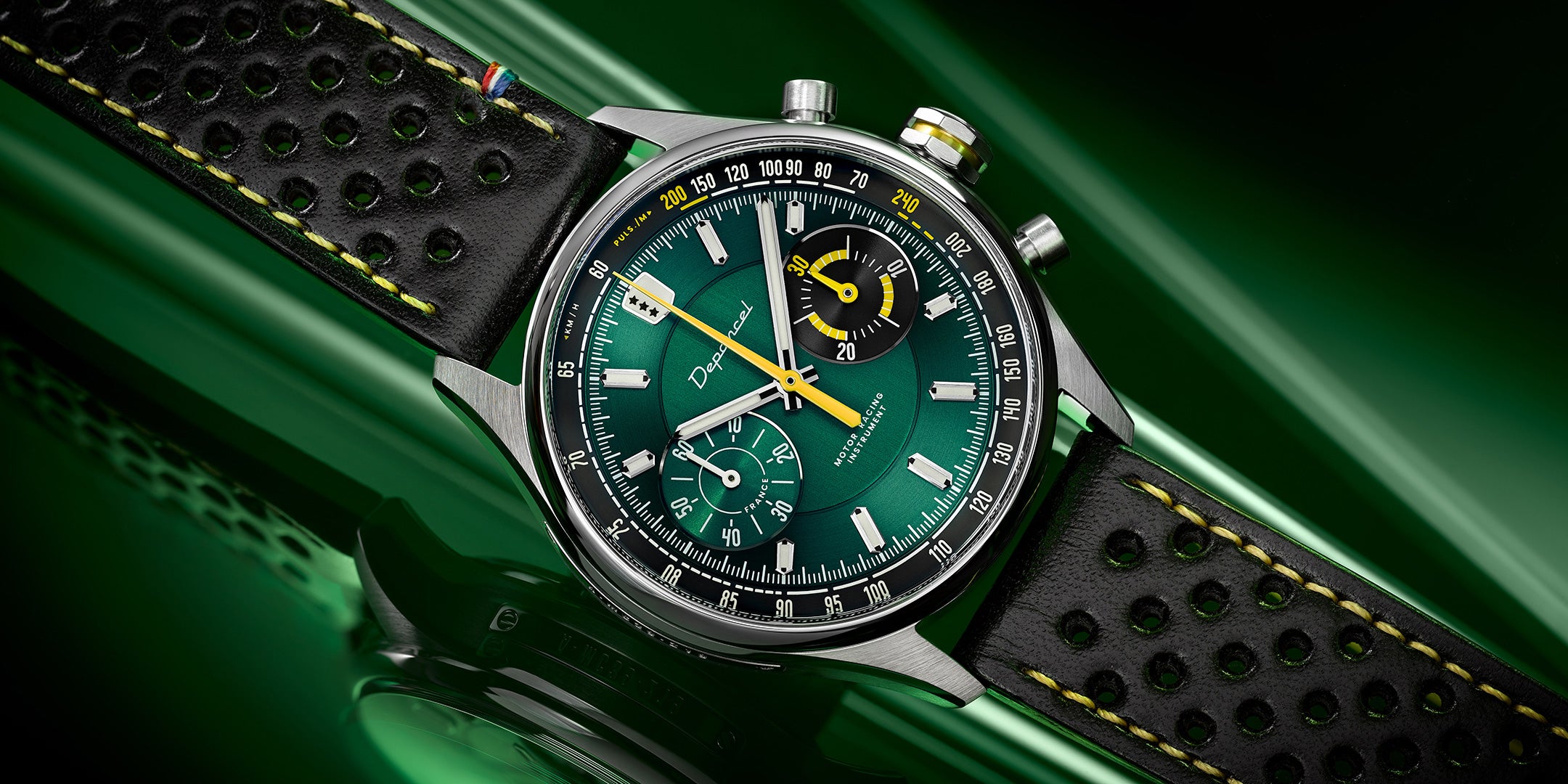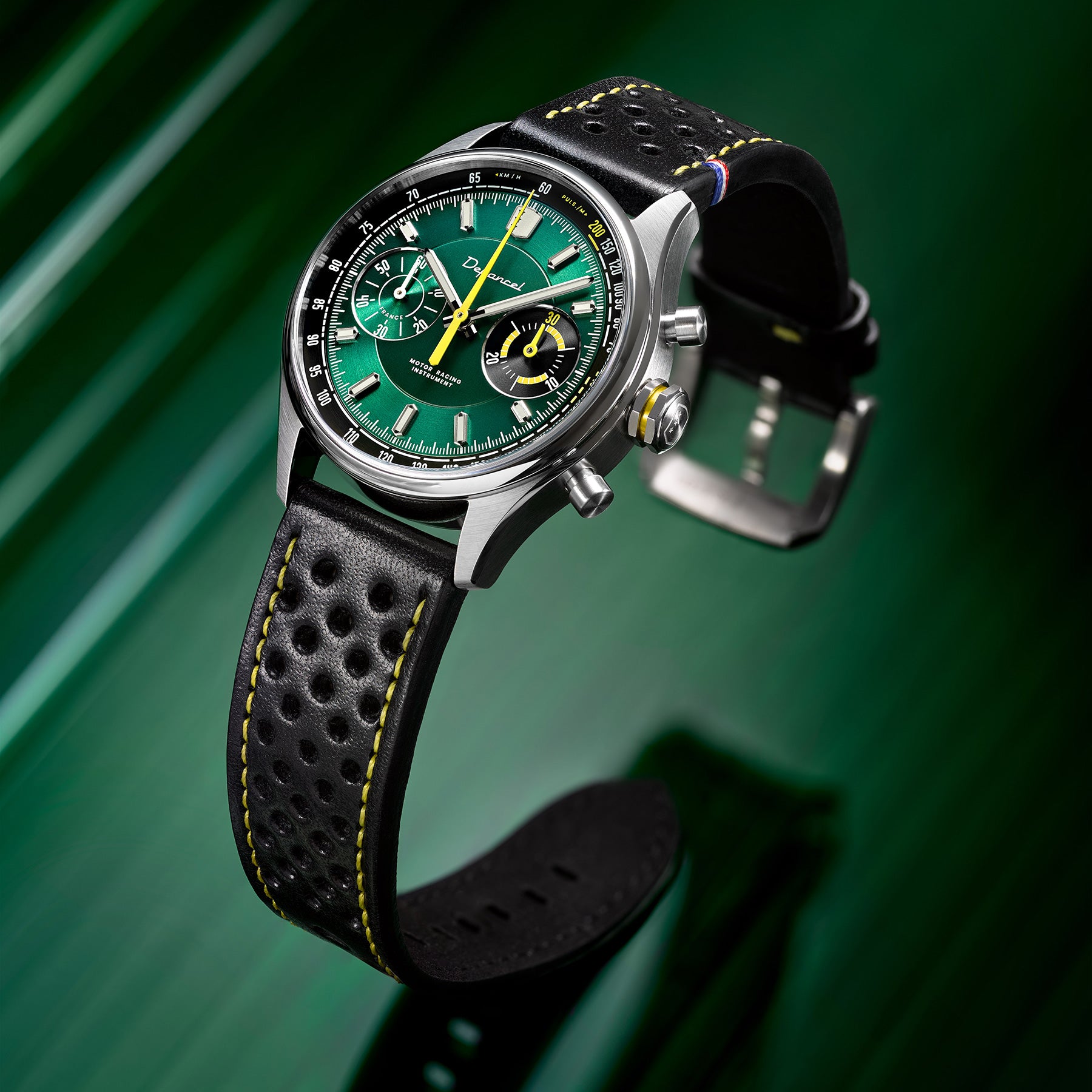 Depancel a été choisi pour devenir Sponsor horloger des courses historiques de la série Masters Historic Racing durant le festival de Silverstone 2024. Ce partenariat incarne notre passion commune pour la précision, l'excellence et l'héritage de la compétition automobile. À cette occasion, nous avons décidé de vous proposer une série limitée à 150 pièces de l'Allure Chronographe manuel 39 mm célébrant le Vert racing anglais.