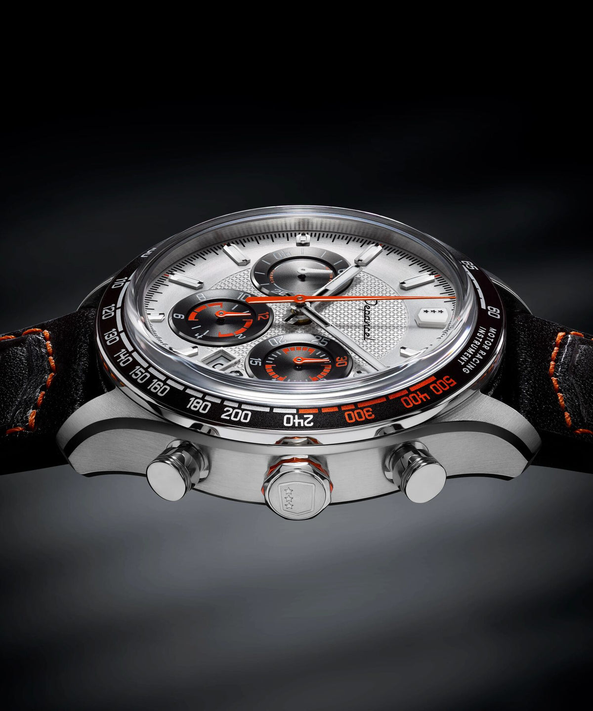 Entrez dans la course avec ce chronographe 43mm équipé d'un mouvement automatique suisse