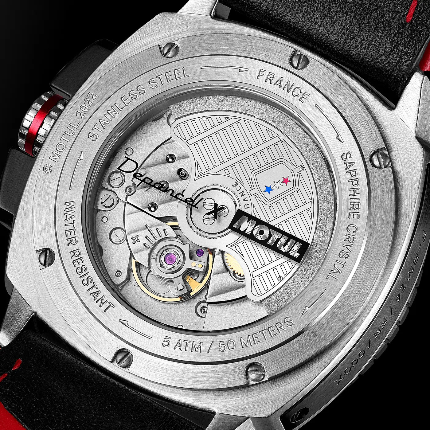 Une collaboration qui sonne comme une évidence entre Motul, acteur incontournable de l’univers du sport auto et moto, présent depuis de nombreuses années dans toutes les disciplines liées à la mécanique et Depancel, marque horlogère directement inspirée du monde de l’automobile.
