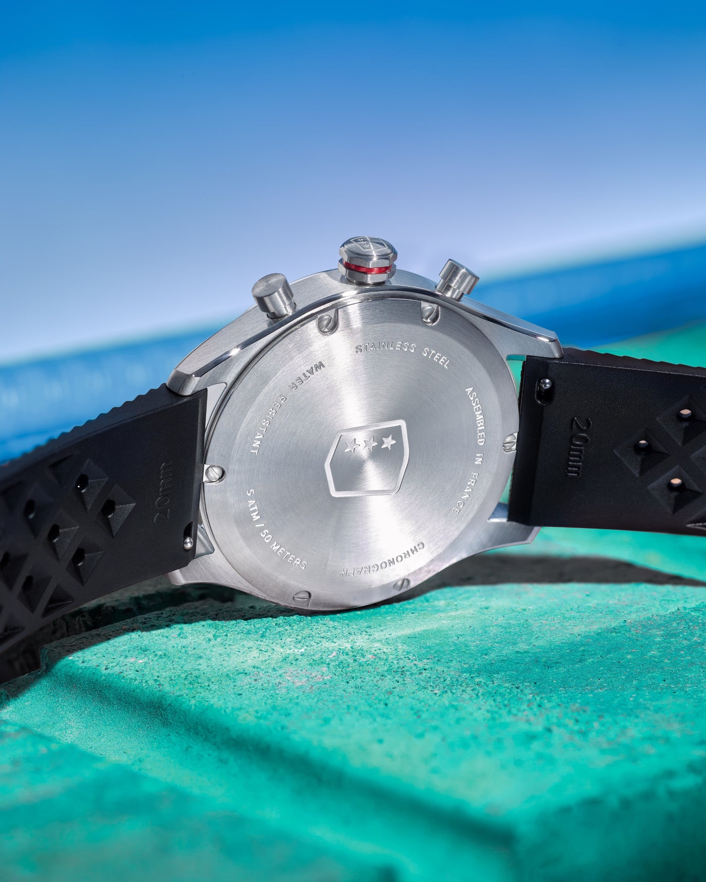 Chaque Allure Mono Eye est unique. Une plaque numérotée en acier, vissée sur le flanc du boîtier, signe chaque exemplaire comme un clin d’œil assumé aux plaques d’immatriculation.