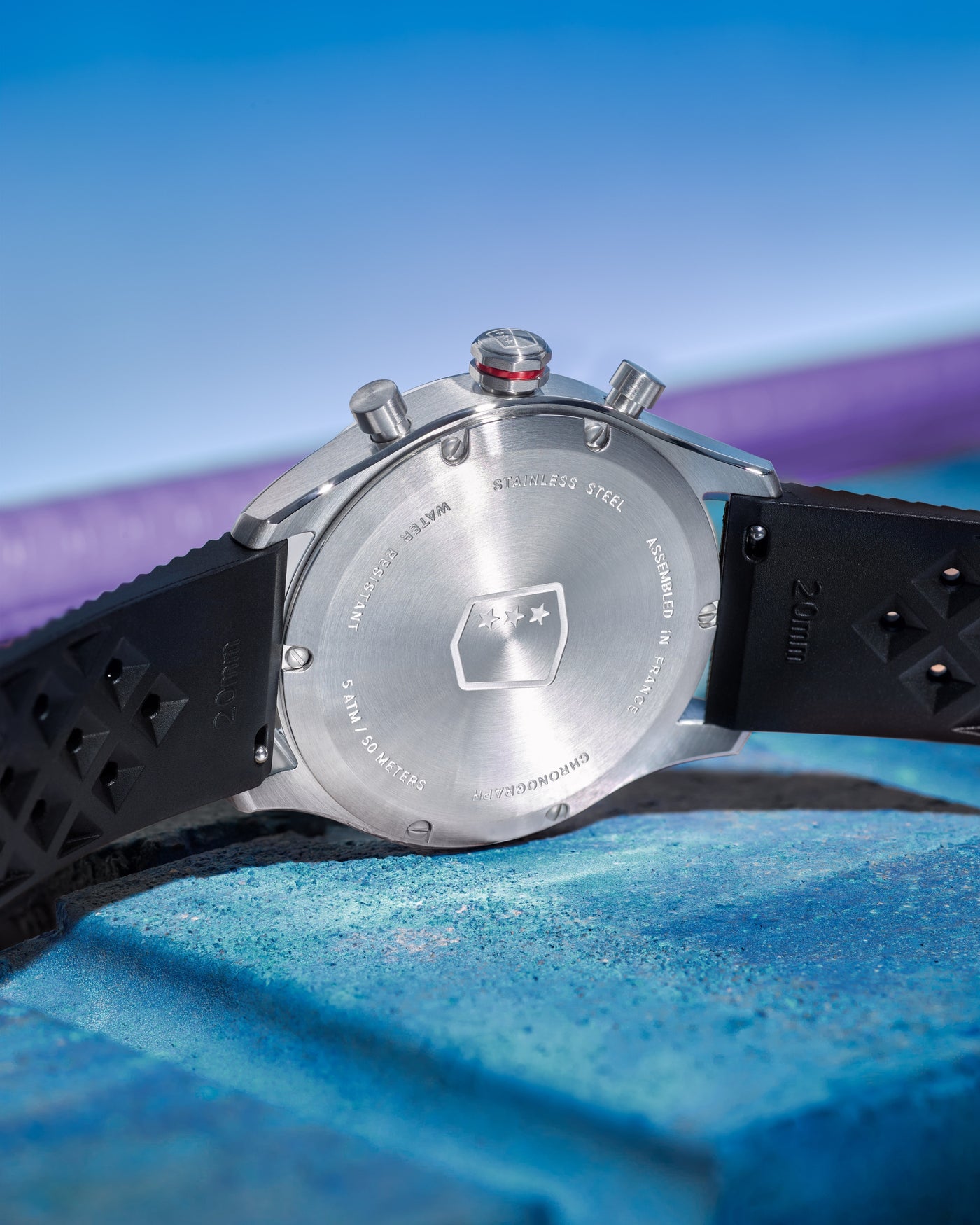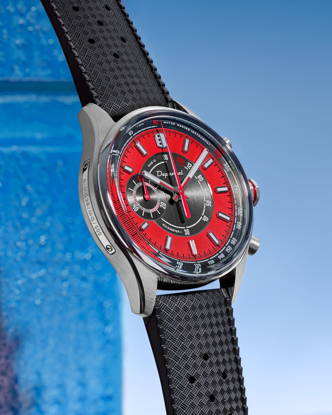 Chaque Allure Mono Eye est unique. Une plaque numérotée en acier, vissée sur le flanc du boîtier, signe chaque exemplaire comme un clin d’œil assumé aux plaques d’immatriculation.
